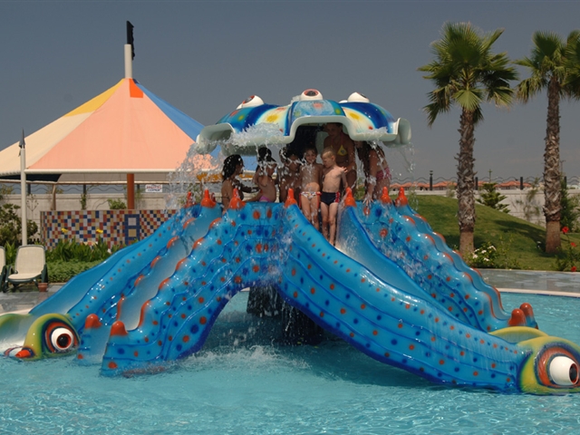 Отель просто класс! Водные горки супер! Ехали в этот отель, потому что в нем хороший аквапарк. Отель для молодежного отдыха. Большая территория с миллионом всяческих развлечений! По вечерам дискотека и шоу-программы. До Белека пару минут на такси. Пляж рядом с отелем. Идти две минуты. На пляже можно арендовать домик, стоит это удовольствие десять евро в день. Очень удобно! Рекомендую. Персонал отеля добродушный, убирают круглосуточно. Пару раз видели, как работник отеля ходил с ручкой и записывал пожелания и недовольства гостей об отеле! Питание разнообразное. Мясо было постоянно, напитки тоже какие хочешь. Много морепродуктов. Была форель, крабы на ужин. Много овощей, фруктов и само собой сладостей. Ресторанов и баров на территории почти с десяток. Каждый день ужинали в разных! Есть рестораны а ла карте ,места в них нужно резервировать заранее. На территории отеля есть спа-центр, небольшой рынок, где можно удачно купить кое-что из сувениров. Нашей компании отдых в Алве очень понравился!