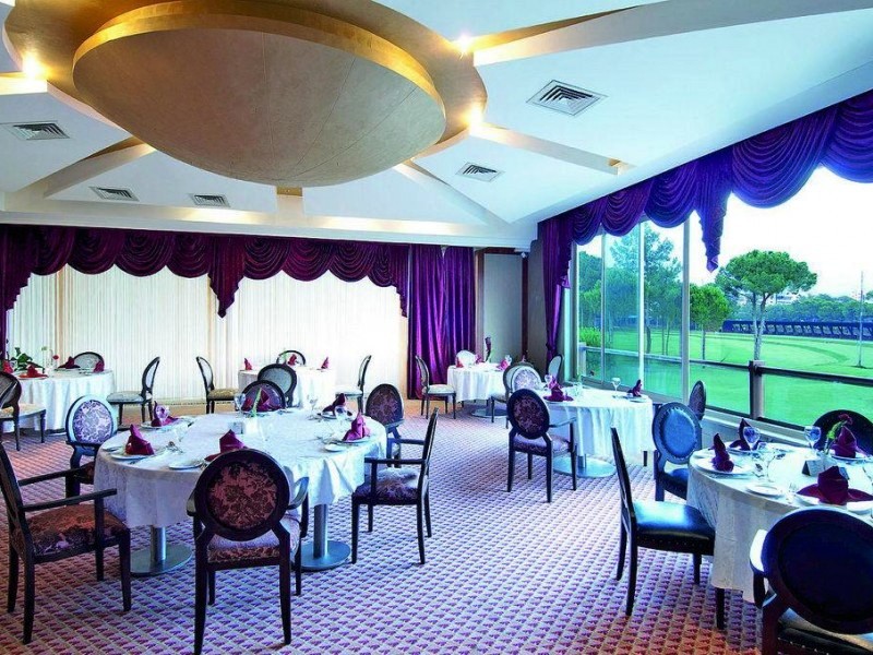В этот отель попали случайно. В качестве премии за успешно завершенный проект начальство выдало путевку на 7 дней на двоих в Турцию. Ох и как же сладостно отдыхалось) Все постояльцы делятся на две категории: те кто любят гольф, и те кто играть не умеет.Сам пробовал поиграть, выходит не ахти, зато все же в гольф играл ))Учитывая, что гольфисты целыми днями гоняют шары по полям, в самом отеле совсем немноголюдно. Про номер. Нам достался чудный номер, с 2мя кроватями. Естественно есть ТВ, есть русские каналы, есть минибар. Ванна вообще сверкает (натирают каждый день чтоли ?) А на балконе даже как-то оказался шезлонг.Загорать конечно там глупо, а вот прилечь вечерком глядя на закат, самое то. От ресторана я меньшего и не ожидал. Все просто шикарно. Но вот что точно меня удивило, это разнообразие и количество рыбы. И тунец, и скумбрия, и форель. И все это одновременно. Ну и конечно мясо всегда было. Сладости. Фрукты. В общем наесться от пуза можно легко и каждый раз. К обслуживанию тоже нет претензий. Ребята вкалывают, вкалывают по-черному. Но зато они всегда улыбчивы и доброжелательны. Работают быстро, четко, и незаметно что-ли. Вот разлил кофе, моргнул, а пол уже вытерт. Раз везде все хорошо, значит и пляж должен быть хорошо. Так и есть. Песок думаю чистят каждую ночь, потому как утром приходишь и он чистый и мелкий рассыпчатый. С шезлонгами проблем нет, местечко всегда найдется. Можно отправиться на пирс и понырять там. На пирсе конечно тоже шезлонги есть. Вечером команда аниматоров устраивает различные шоу, конкурсы. Поскучать не дадут. Меня 2 раза за неделю на сцену вытаскивали )Разве что с дискотекой чуток не лады, но все же отель куда больше подходит для спокойного отдыха, чем для безбашенного отрыва молодежи. Вернусь ли я сюда еще ? Не знаю. Но точно ни за что не пожалею, что отдыхал здесь.